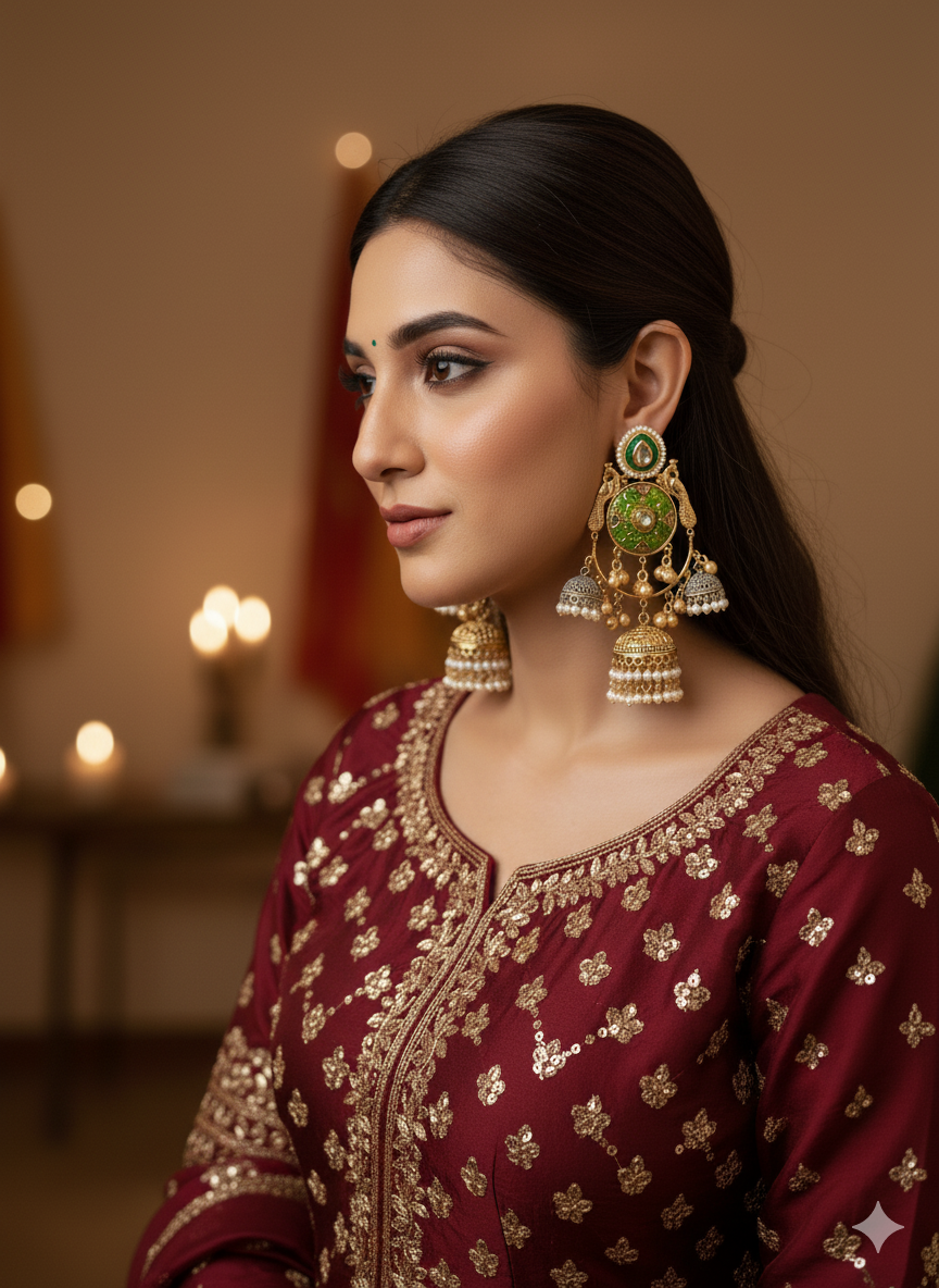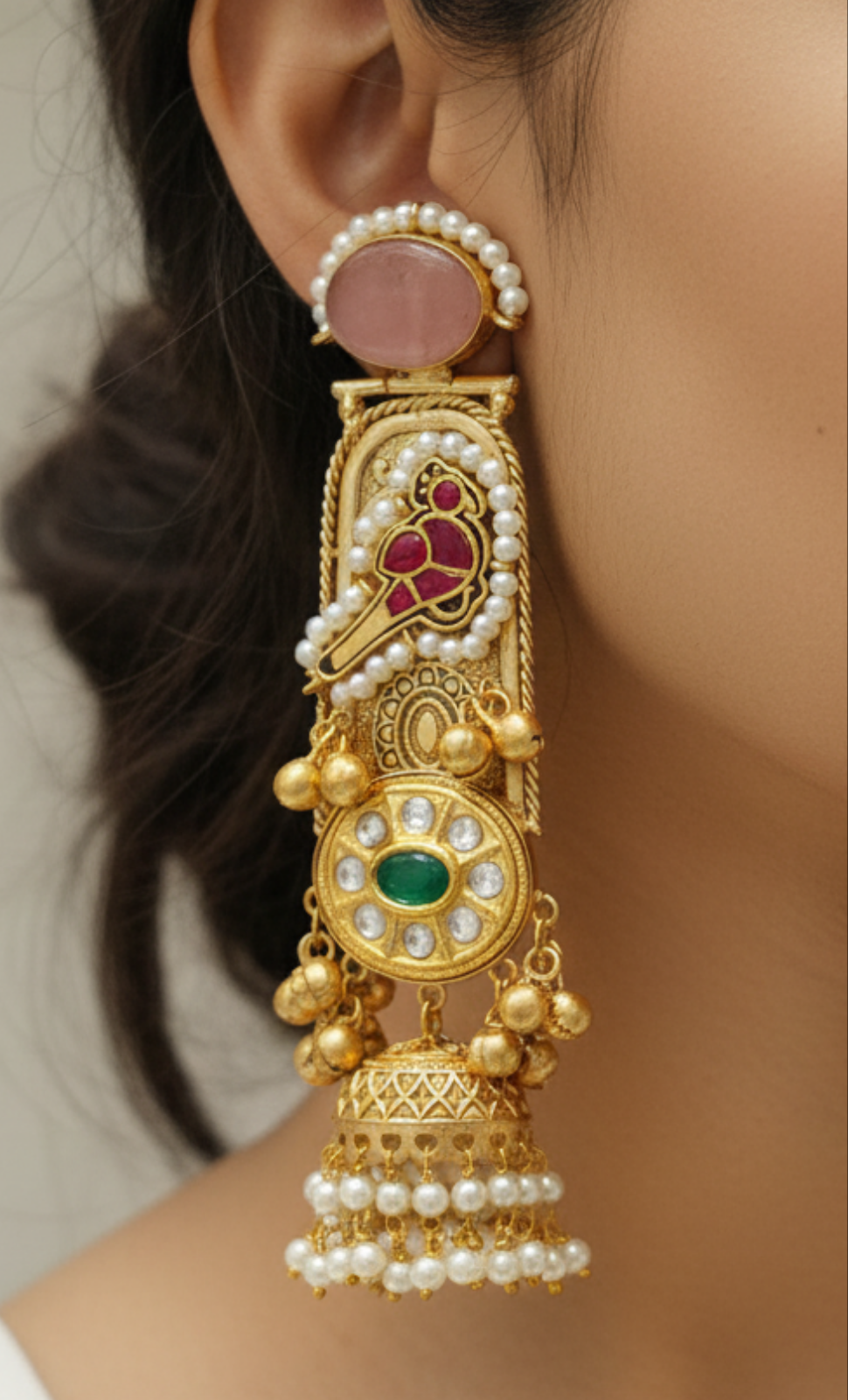Discover the timeless elegance of our Kundan pearl earrings. Handcrafted with precision and adorned with...