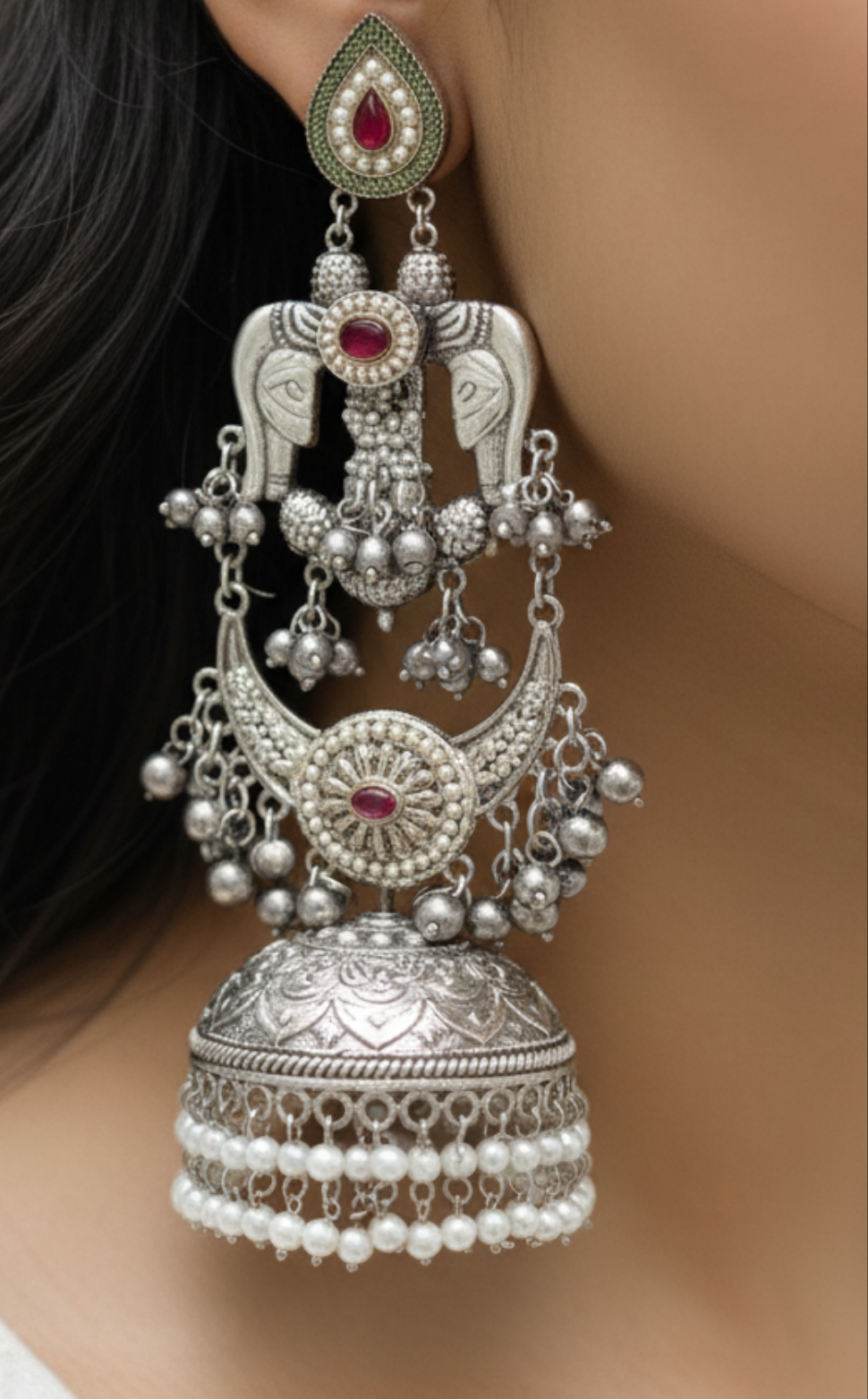 With the NUSRAT COLLECTION Silver Plated Long Earrings, elevate your style and add a touch of elegance to any outfit. These earrings are crafted with precision and coated with high-quality silver for a luxurious look. Perfect for any occasion, these earrings are a must-have in your jewelry collection.