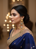 Expertly crafted by hand, the Vidya Chandbali-Emerald boasts a stunning brass chandbali design adorned with exquisite American diamond work. Elevate any outfit with this stunning piece that exudes luxury and elegance.